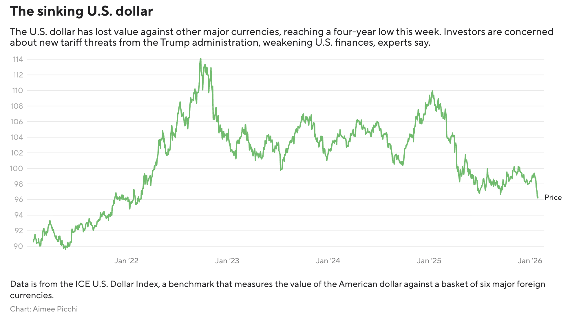 Now that you’re up to speed, let’s go build some wealth. 👀 What I'm Watching:2026 does not look like a great start for the US. The US Dollar recently fell to its lowest levels in 4 years, losing about 10% of its value in the past 12 months alone. What's happening? 1) Our national debt is growing really fast The US national debt is sitting around $38.5 trillion as of the end of 2025. The scary part is we went from $37 trillion to $38 trillion in about two months. Historically, adding a trillion dollars to our debt used to take years. Now we're doing it faster than you can finish a Netflix series. 2) Wax on, wax off There's still a lot of uncertainty with tariffs. Sometimes they're on and sometimes they're off. We also just entered into a partial government shutdown, which is coming right after the longest recorded government shutdown in US history. 3) Lots of tension Let's not forget the ongoing drama around the Federal Reserve and President Trump. There's legitimate concern about whether the Fed (and it's new potential chairman) will cave to Trump's pressure to cut interest rates. 📝 The Breakdown:Here's how this impacts your money and wallet: Unfortunately, it's kind of a lose-lose situation for everyday Americans. 1) Traveling to another country will be more expensive cause your cash money won't go as far as it used to. 2) Things in the US are also going to get more expensive... American companies will need to pay more to import products and materials from abroad (and this is on top of existing tariffs). And you already know who they're gonna pass these additional costs to. ✍️ Your Next Move:Here's what you need to do today: The last thing you should do is keep your cash under your mattress or in a regular bank because it's going to keep losing value. Step 1: Make sure you have enough cash for your emergency fund. And make sure that money isn't just sitting around doing nothing. Which is why I tell everyone to keep their emergency fund in a high-yield savings account. It's the best place to store money that you need access to (it's safe, and your money can earn more money thanks to higher yields) Here's the High Yield Savings Account I'm currently using. It's one of the few ones still offering a 4% yield. Step 2: If you have any cash left over, you gotta do something with it. Otherwise, it's just going to keep losing value. Many people like to invest in gold to protect against inflation. I'm personally not a huge fan of gold (as an investment) for a few reasons that I won't get into today. If you're curious, let me me know. If we got enough curious cats here, I'll share why in a future newsletter. But some things I AM looking into are short term treasury bills, international stocks, small-cap companies, Bitcoin, Ethereum etc. If want to find out why, I made an entire video on YouTube where I share my investing thoughts and strategy for the 1st half of 2026. But whatever you decide to do, promise me you won't just let you cash sit around, okay? PS: What do you think about the new newsletter content? Love it? Hate it? Just reply to this email and let me know. 🗓️ Behind The Scenes:Here's a quick recap of what I was up to this past week:
